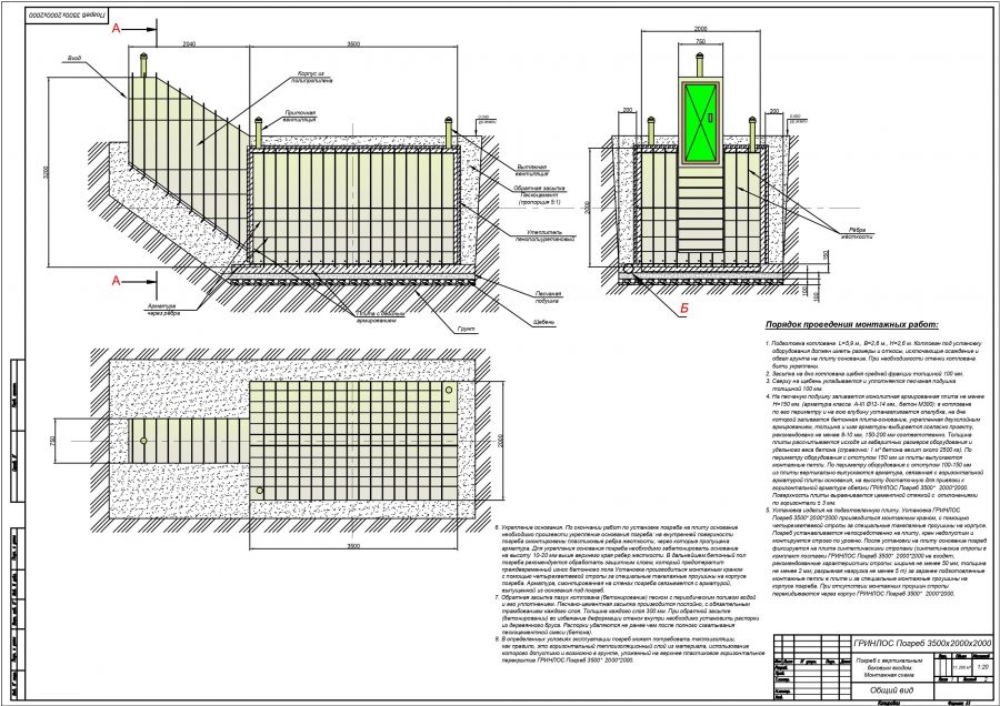 Монтажные схемы Гринлос Погреб ДТ 3500*2000*2000